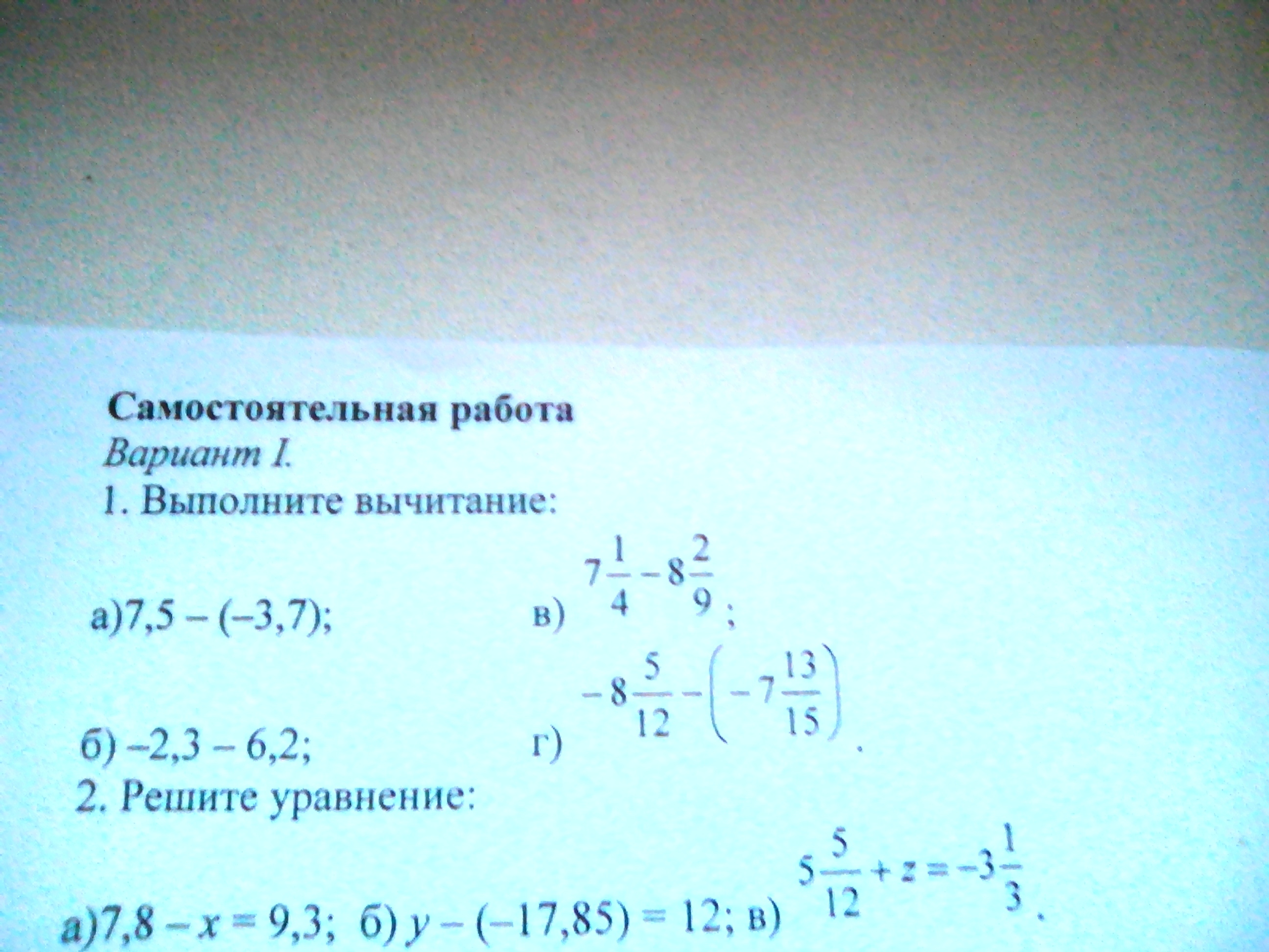 г) -8 5/12 - (-7 13/15)=-8 5/12+7 13/15 = -(8 25/60-7 52/60)=