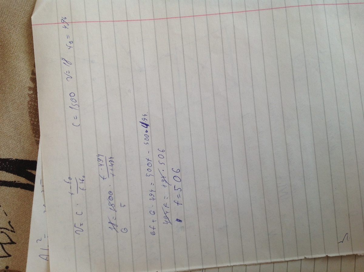 Локатор батискафа, равномерно погружающегося вертикально вниз, испускает ультразвуковые импульсы частотой 494 МГц. Скорость спуска батискафа, выражаемая в м/с, определяется по формуле v=c•(f-f0/f+f0), где c=1500 м/с — скорость звука в воде , f0— частота испускаемых импульсов (в МГц), f — частота отражeнного от дна сигнала, регистрируемая приeмником (в МГц). Определите наибольшую возможную частоту отраженного сигнала f, если скорость погружения батискафа не должна превышать 18 м/с.