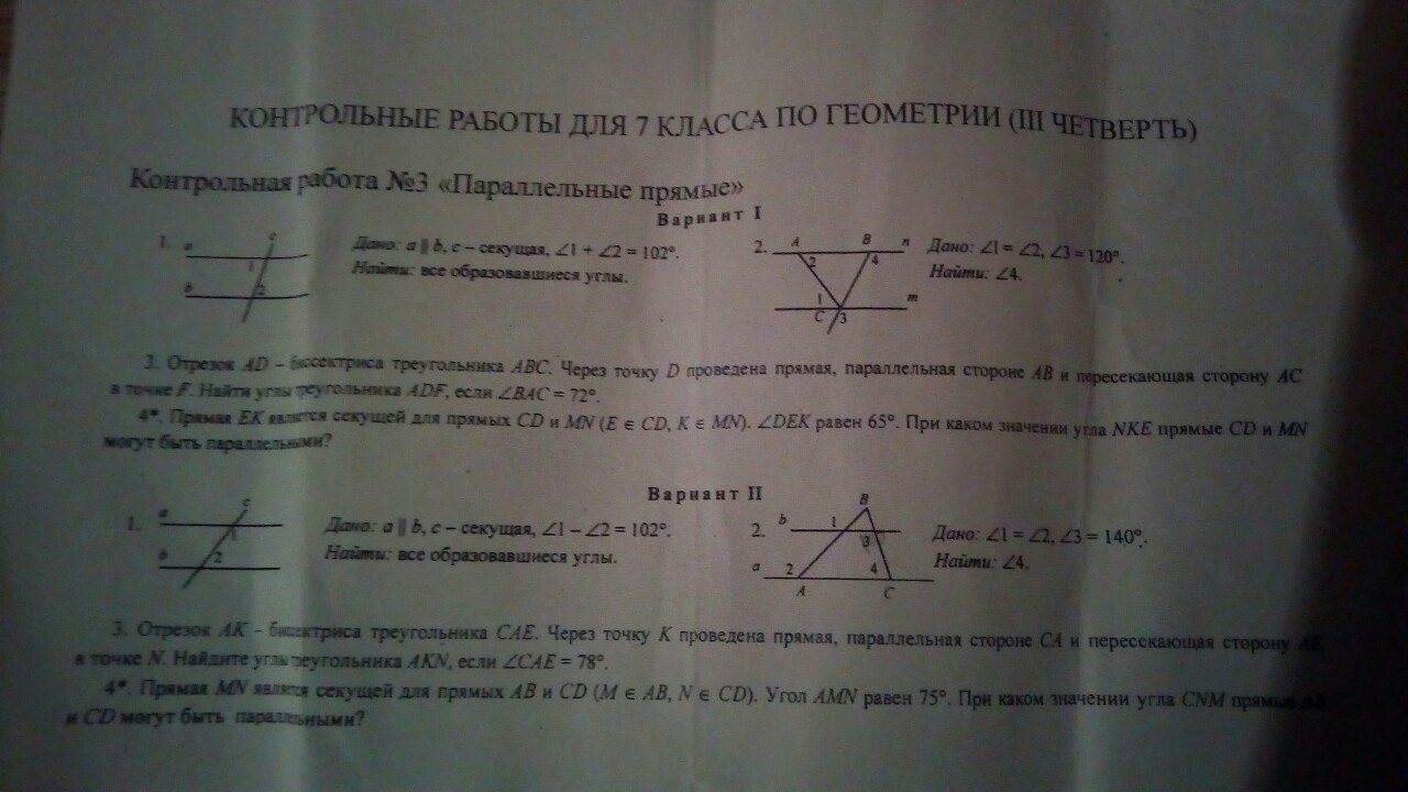 №4* CD параллельна МN если сумма односторонних углов 180 градусов, углы DEK и NKE односторонние.поэтому угол NKE=180-65=115