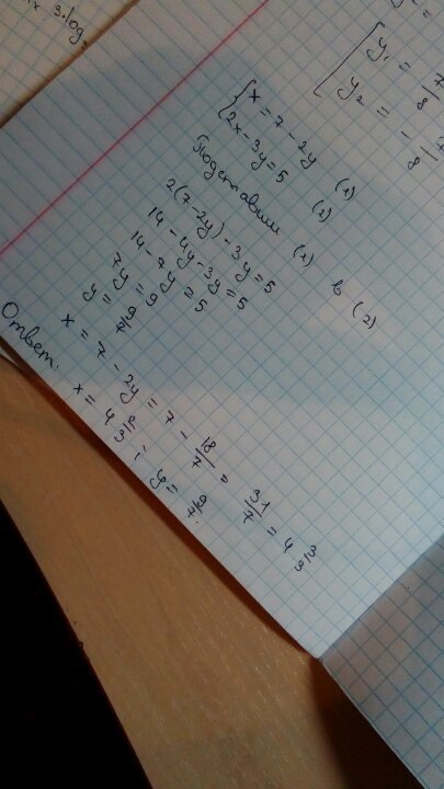 Выражаешь x в первом уравнении, после чего подставляешь во второе.