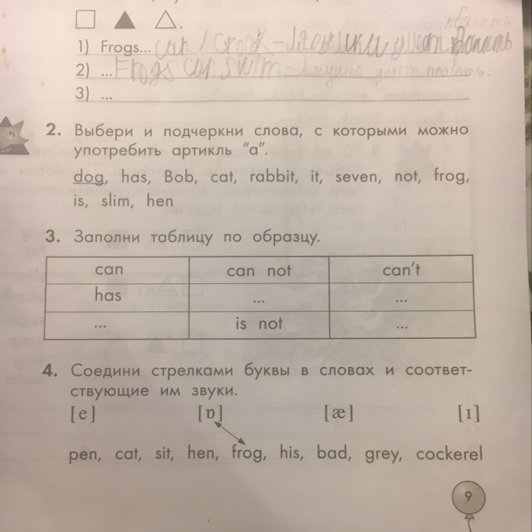 2 a dog a frog a cat a rabbit a hen