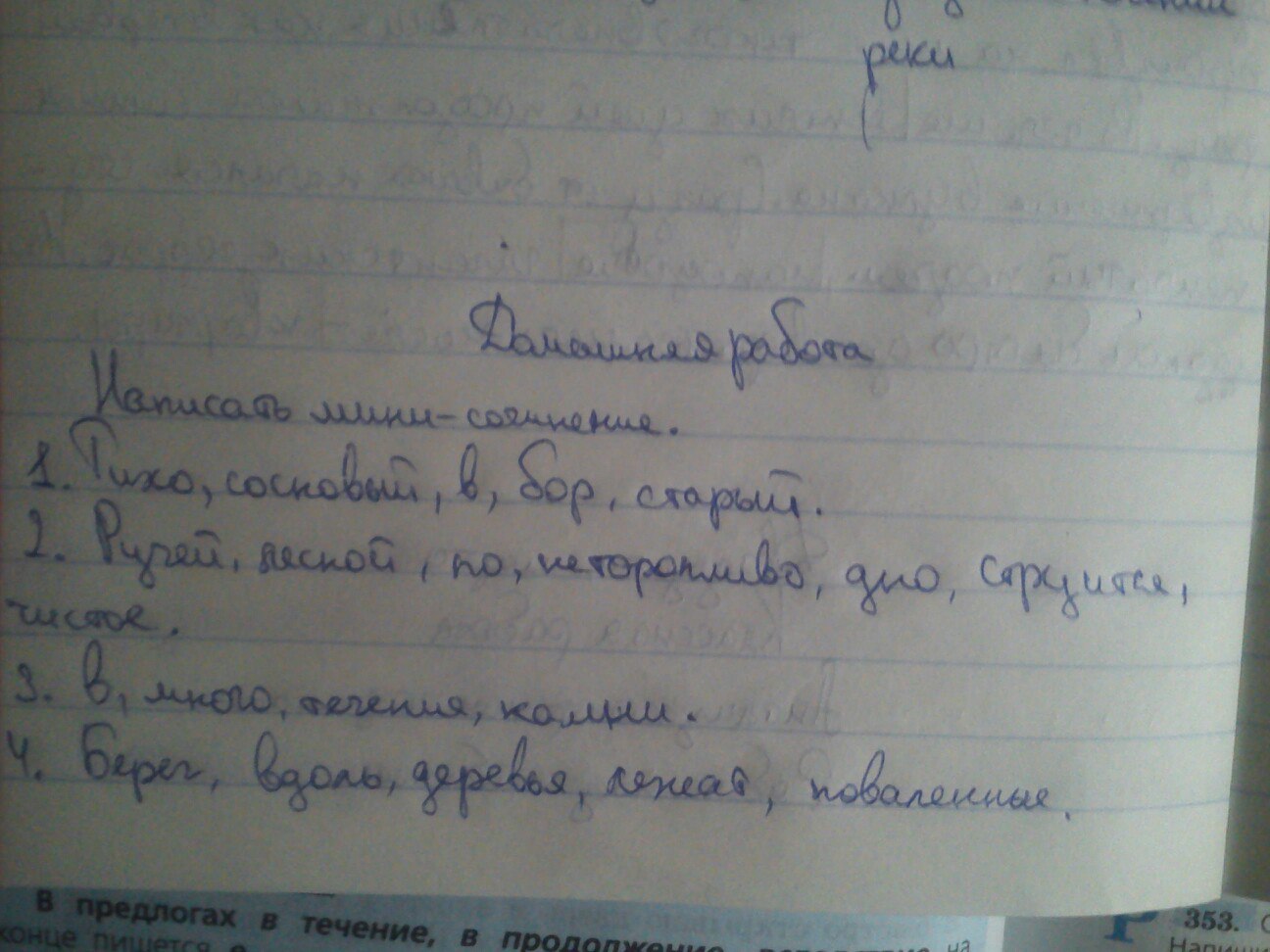 В старом сосновом бору тихо. Лесной ручей неторопливо струится по чистому дну. В [его] течении много камней. Вдоль берега лежат поваленные деревья.