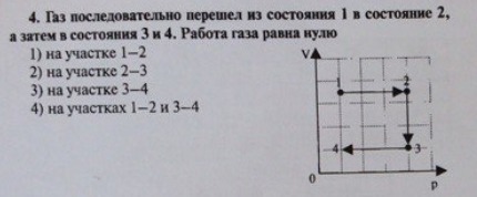 газ последовательно перешел из состояния 1 состояние 2 затем в состояния 3 4 работа газа равна 0