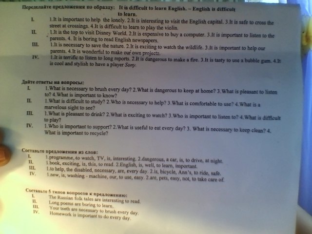 II. 2) Computer is expensive to buy. 4) English newspapers are boring to read.