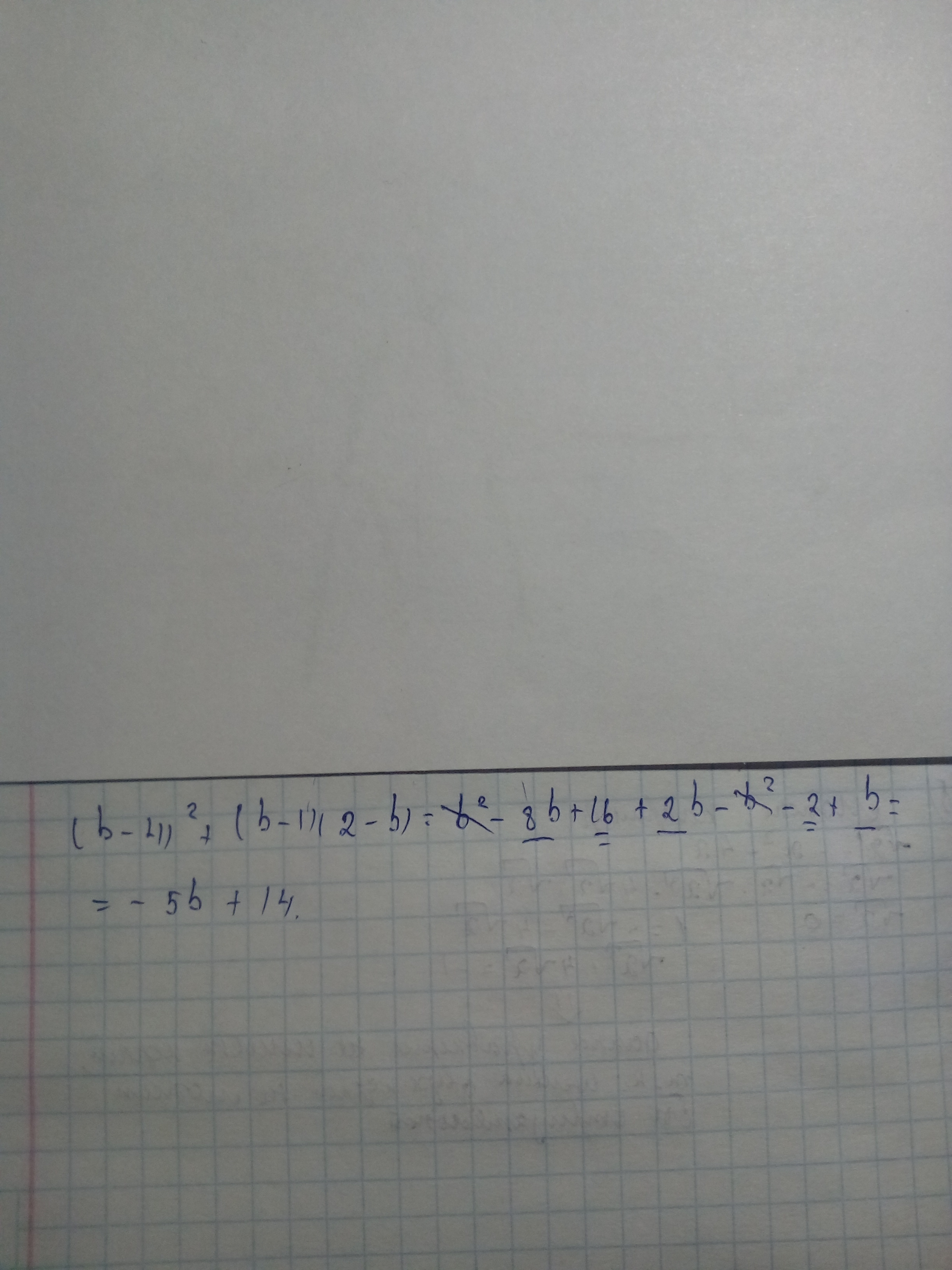 Соединяем все b² - 8b + 16 + 2b - b² - 2 + b = (ищем подобные