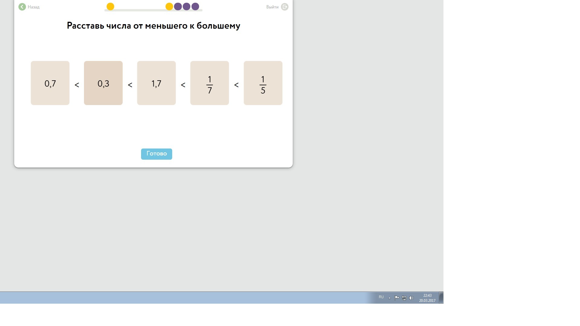 Ответ: 1,7 < 0,7 < 0,3 < 1/5 < 1/7