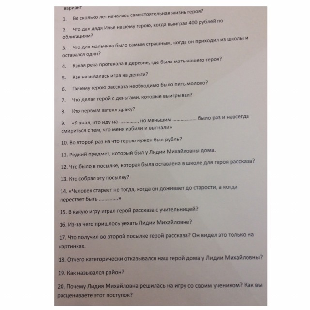 помогите пожалуйста с вопросами по произведению "уроки французского "