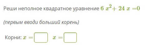 6х²+24х=0 6х(х+4)=0 или 6х=0 или х+4=0
