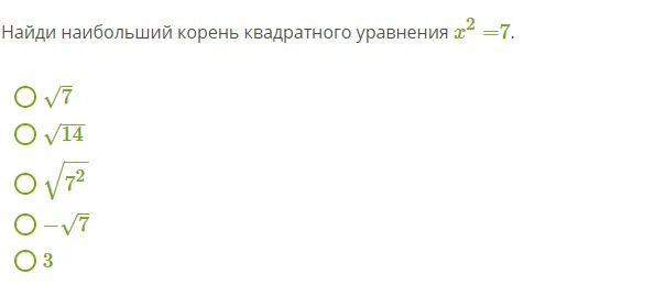 х²=7 х=-√7 и х=√7 но надо найти наибольший,поэтому х=√7