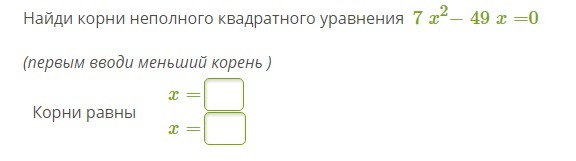 7х²-49х=0 7х(х-7)=0 или 7х=0 или х-7=0