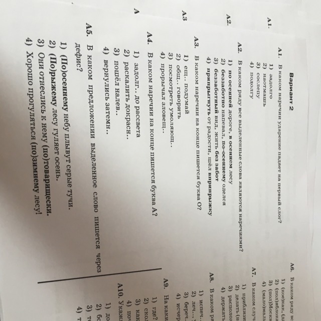 А 1 ответ: 4; А 2 ответ: 2 ; А 3 ответ:2; А 4 ответ: 2 ; А 5 ответ: 1;