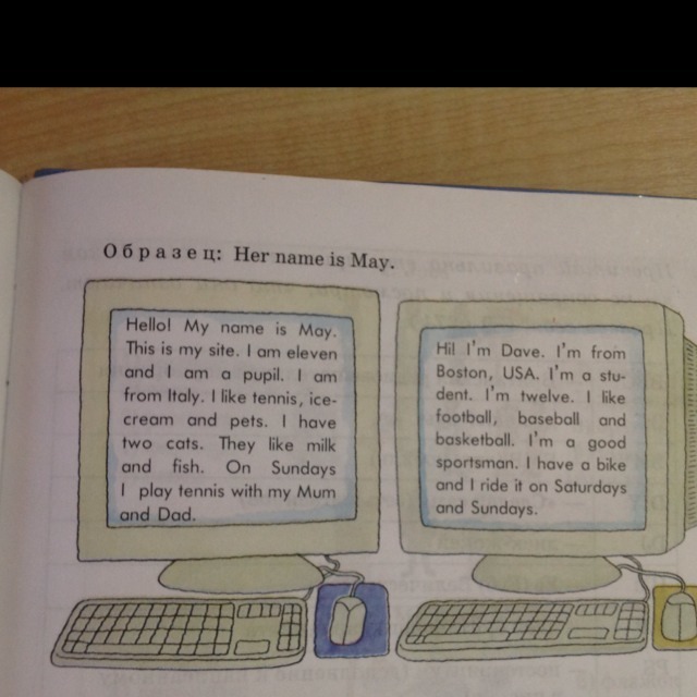 Посмотри на компьютерные сайты девочки may и мальчика Dave и скажи, что ты узнал о них только о мэй