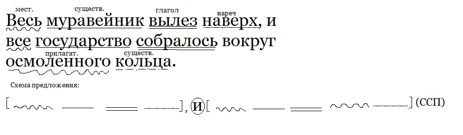 весь муравейник вылез наверх и все государство собралось вокруг осмоленного кольца. сделайте синтаксических разюор слова плс
