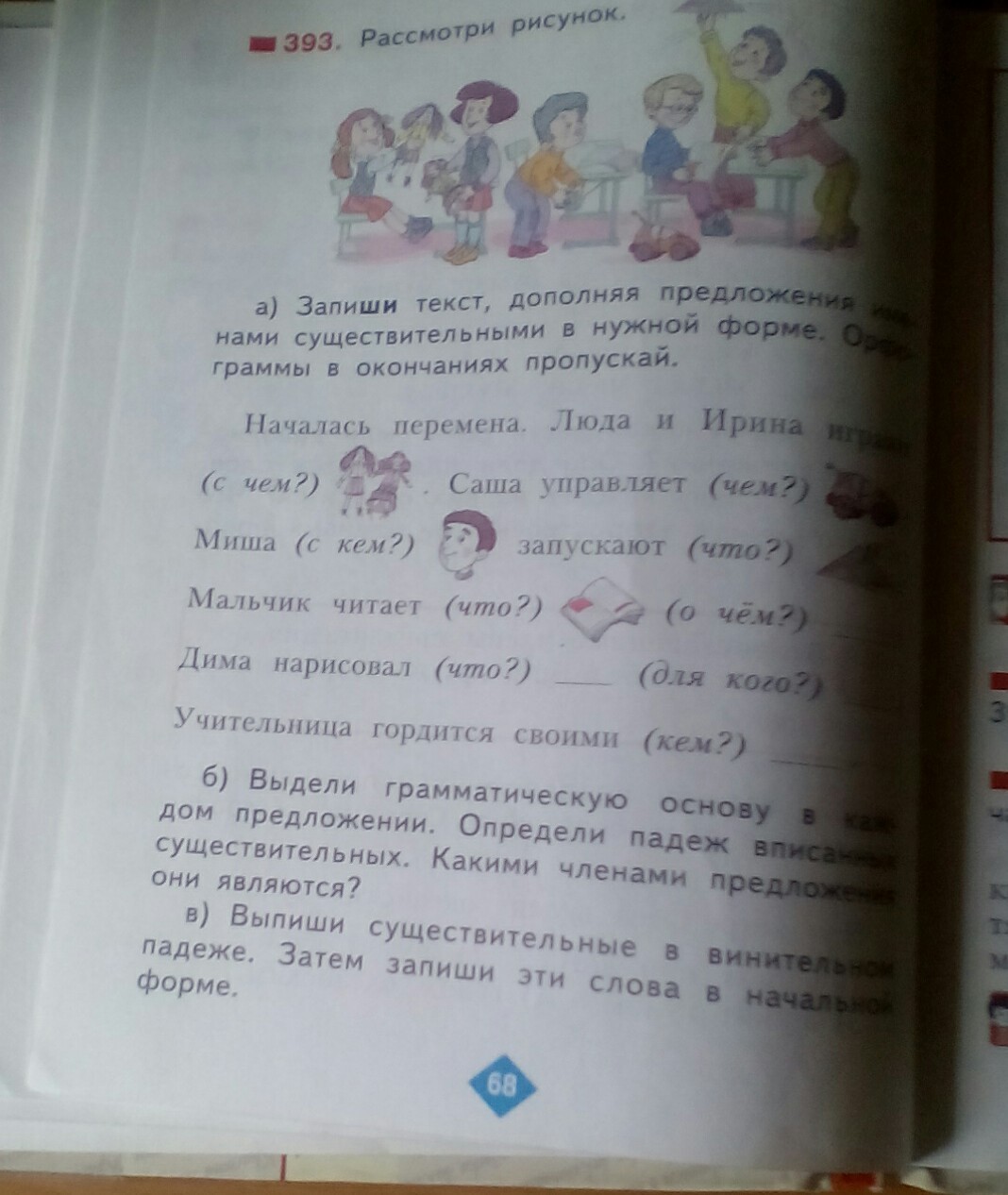 запиши текст,дополняя предложения именами существительными внужной форме.Орфограммы в окончания пропускай