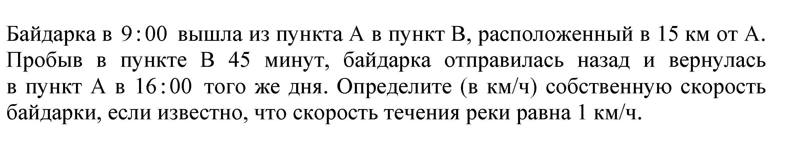Находим сумму времен, которые байдарка плыла туда, стояла и плыла обратно: (естественно, вырая все в часах)