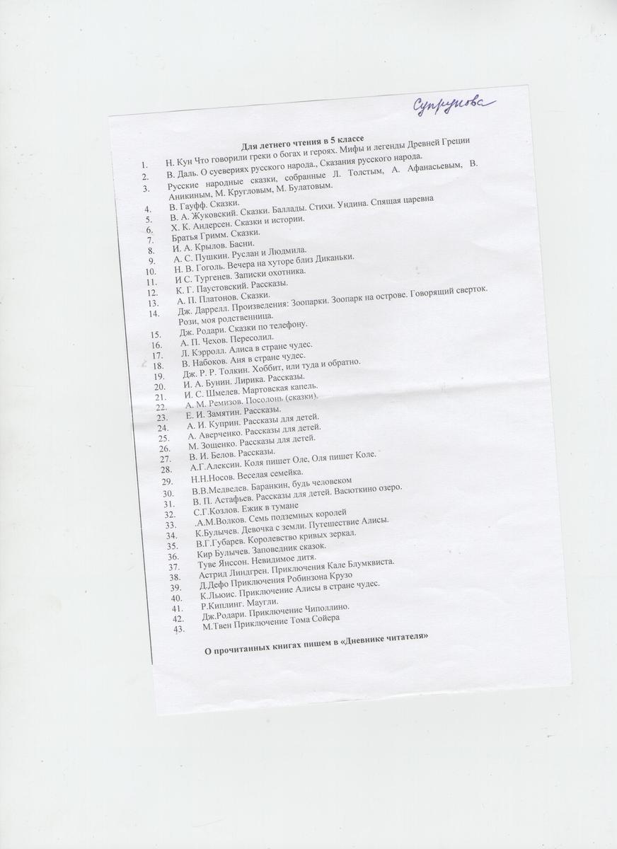Мне нужна литература для чтения летом после 4того класса.