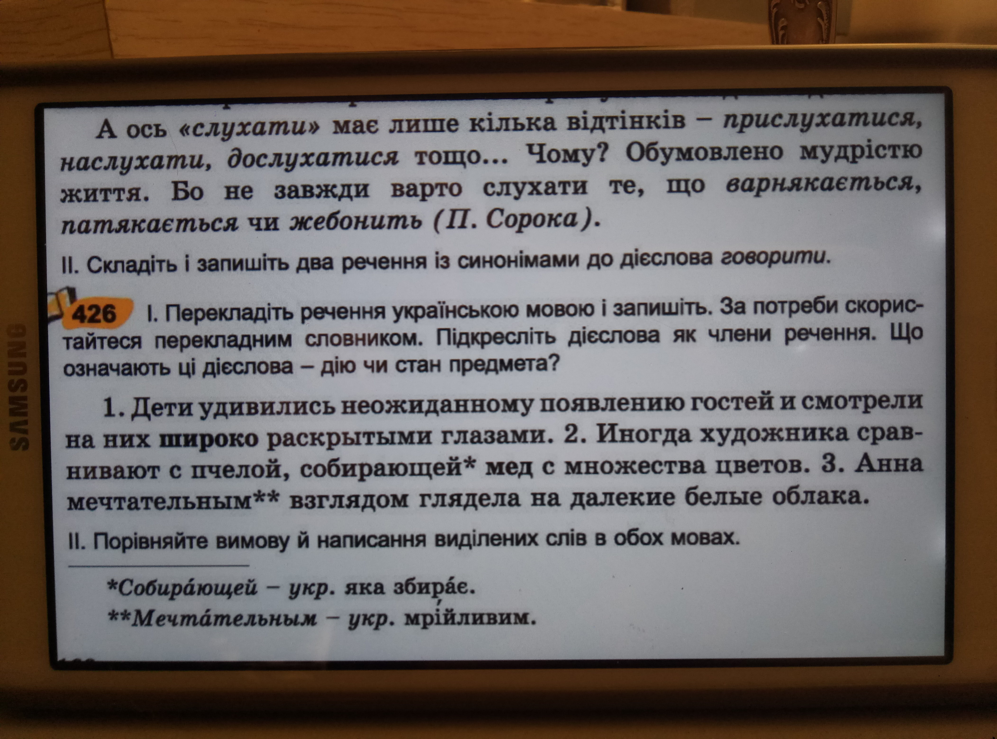 1.Діти здивувалися несподіваній появі гостей і дивилися на них широко відкритими очима.2.Іноді художника порівнюють з бджолою,яка збирає мед з багатьох квіток.3.Аня мрійливим поглядом дивилася на далекі білі хмаринки.