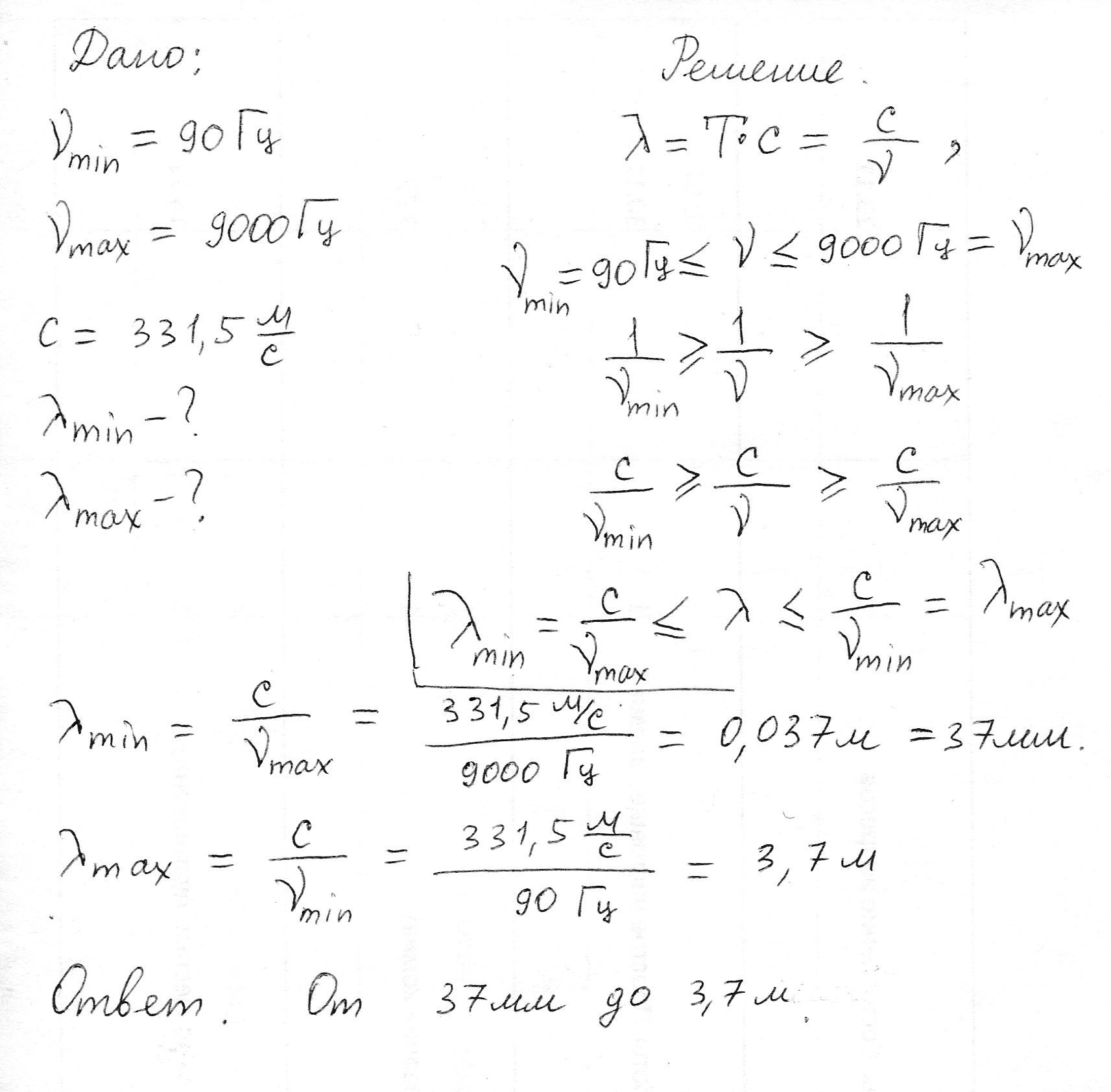 Частотный диапазон рояля от 90 до 9000 гц. Найдите диапазон длин звуковых волн в воздухе создаваемые роялем. (Дано.Решение. и с формулами пожалуйста