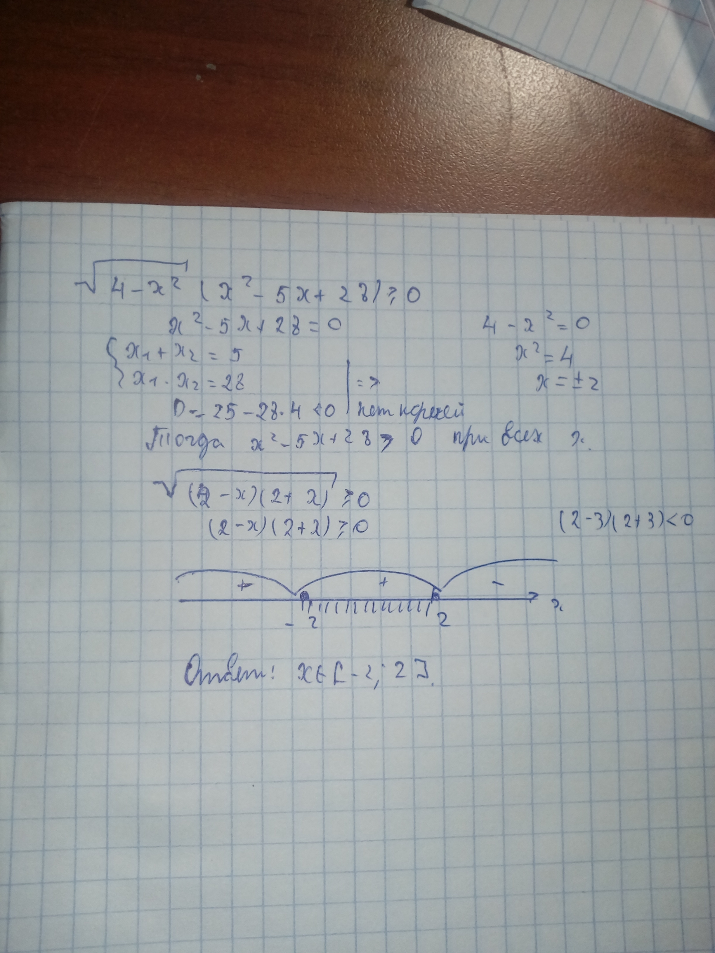 Дам хоть 100 баллов за решение) Решите данное неравенство: √4−x^2(x^2−5x+28)≥0.