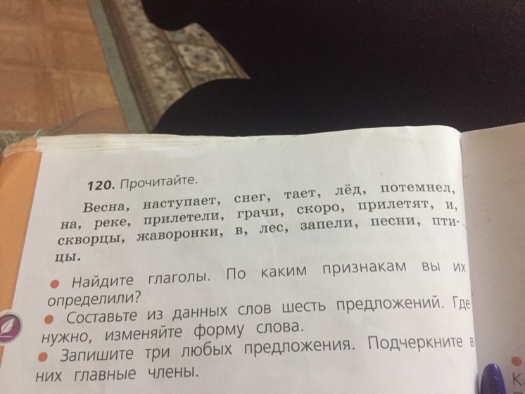 Наступает, потемнел, прилетели, прилетят, запели.