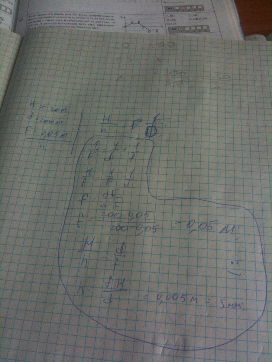 дерево высотой 20м, находится на расстоянии 200м от объектива фотокамеры. Если фокусное расстояние объектива 50мм, то высота дерева на негативе равна