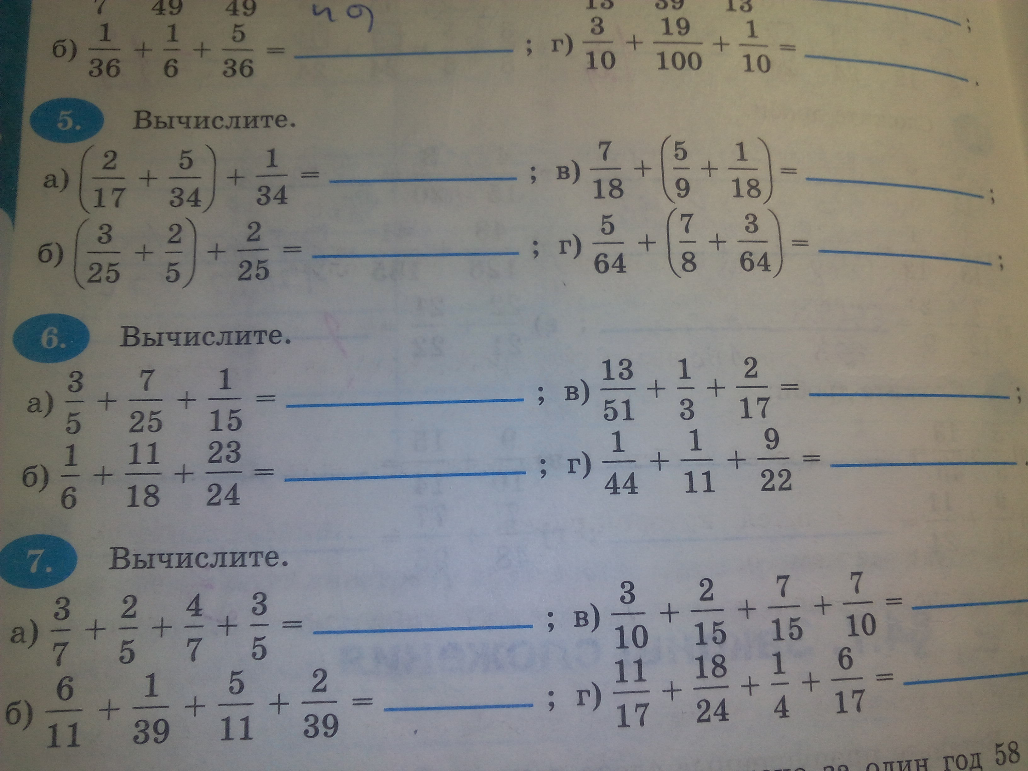 г) 5/64+(7/8+3/64)=(в скобках приводим к общему знаменателю) 5/64+(56/64+3/64)=64/64=1