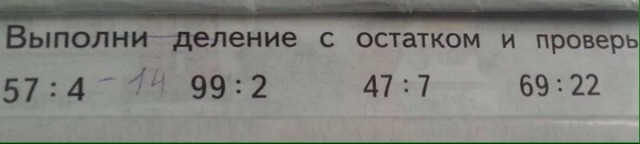 57/4=14 остаток 1 проверка 14*4=56, 57-56=1