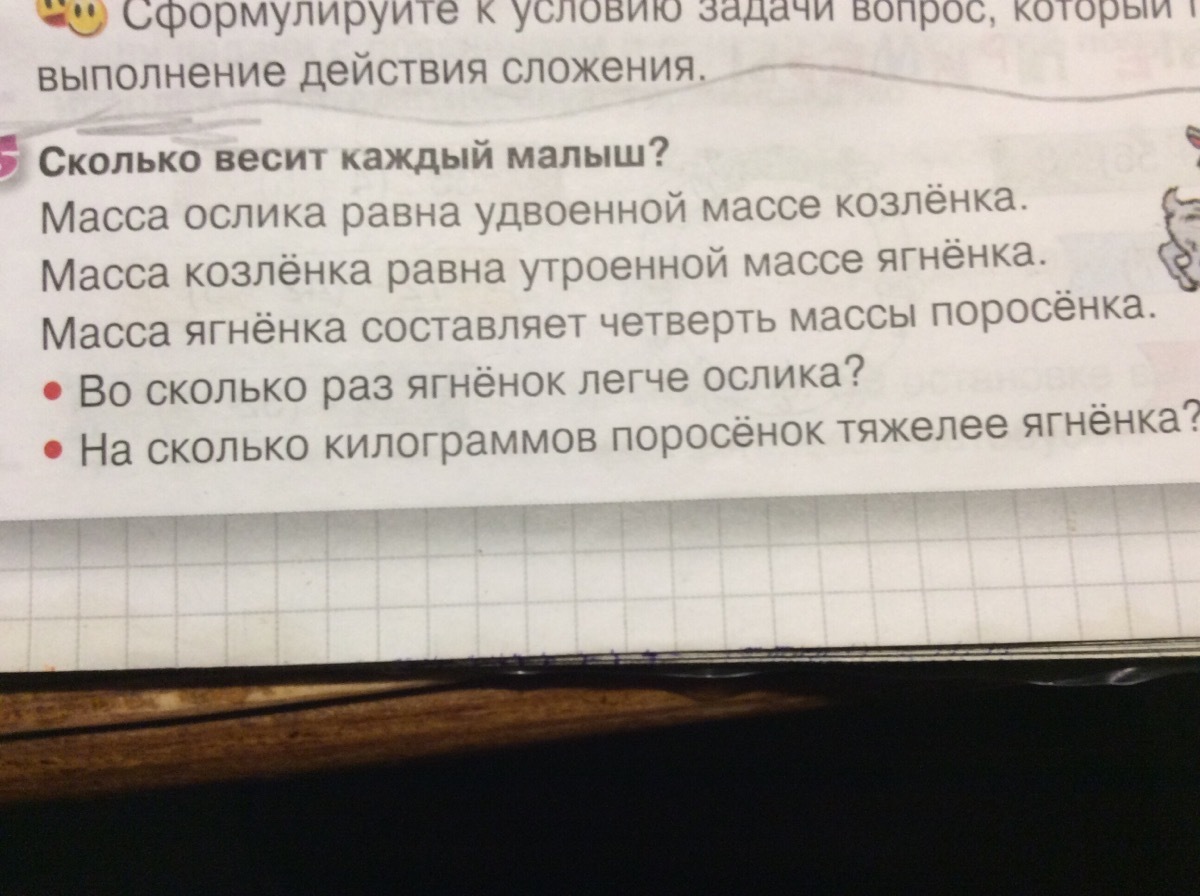 18:3=18/3=6 - во столько раз ягненок легче ослика.