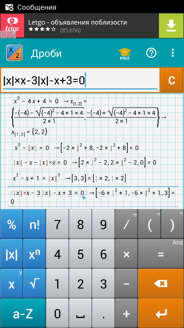 x^2-4|x|+4=0