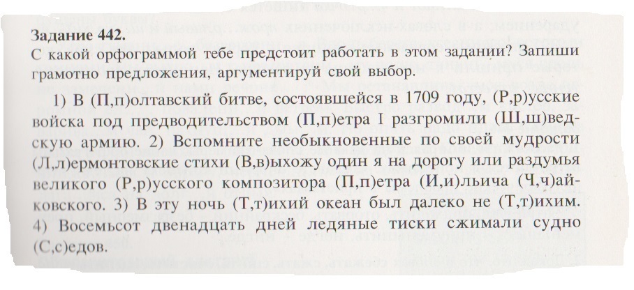 1) В Полтавской битве , состоявшейся в 1709 году, русские войска под предводительством Пётра I разгромили шведскую армию. 2) Вспомните необыкновенные по своей мудрости Лермонтовские стихи "Выхожу один я на дорогу" или раздумья великого русского композитора Пётра Ильича Чайковского. 3) В эту ночь Тихий океан был далеко не тихим. 4) Восемьсот двенадцать дней ледяные тиски сжимали судно "Седов".