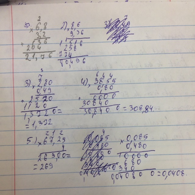 1) 6,8×3,2 3)0,49×2,8 5)67,25×4