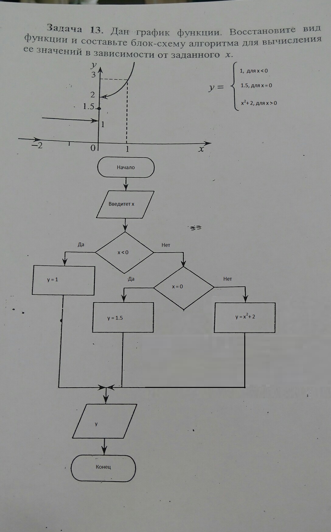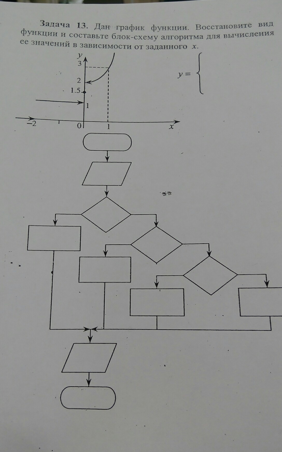 Дан график функции. восстановите вид функции и составьте блок-схему алгоритма для вычисления её значений в зависимости от заданного x.