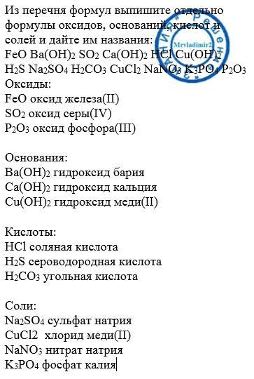 1. Из перечня формул выпишите отдельно формулы оксидов, оснований, кислот и солей и дайте им названия: