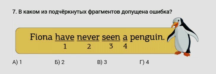 Помогите с олимпиадой по Английскому языку. Если переводится как "Фиона никогда не видела пингвина".