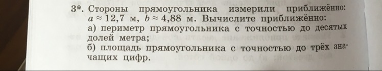 Стороны прямоугольника измерили приближённо: а~ 12,7м. b~4,88м.