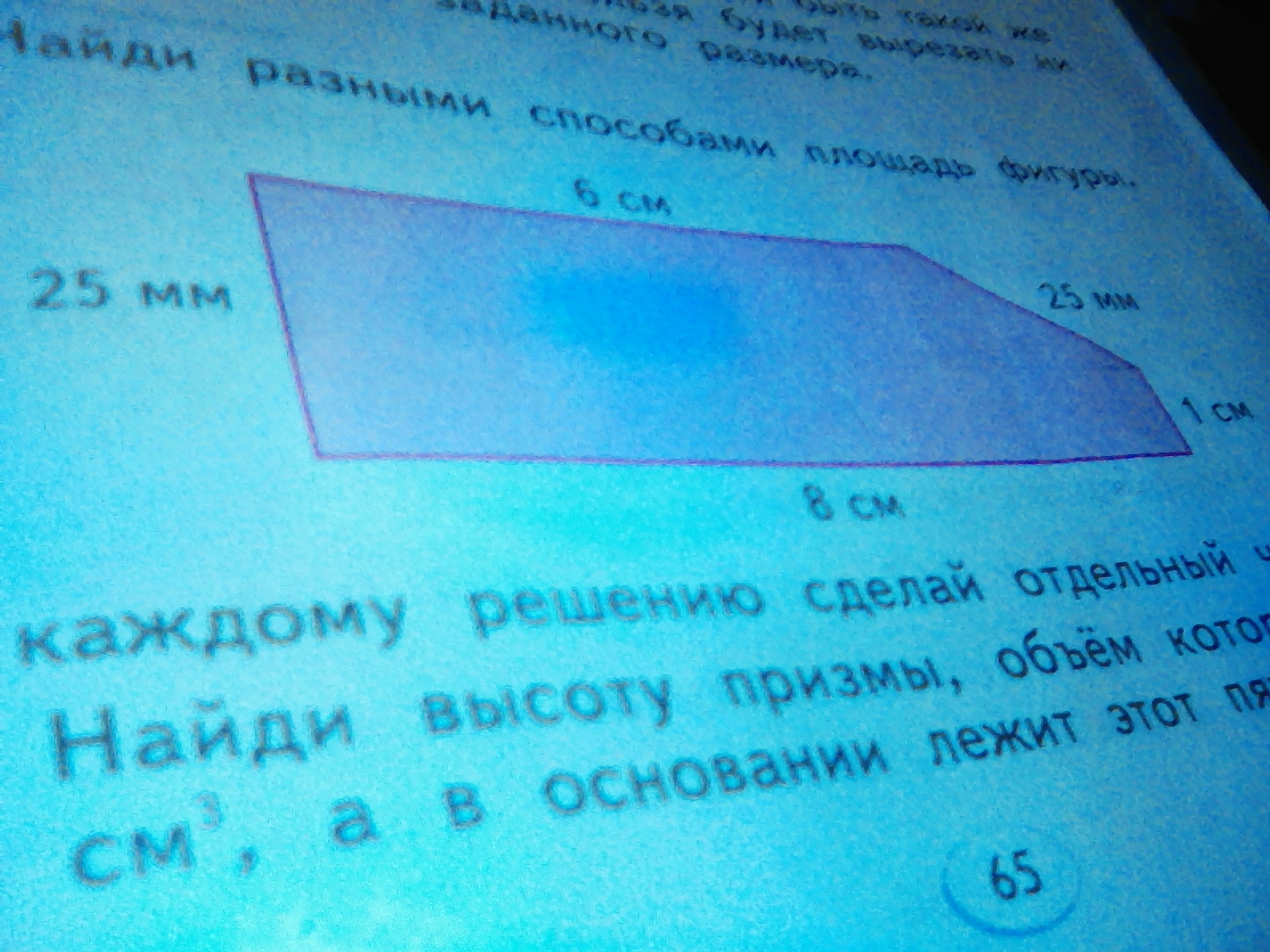 Трапеция со сторонами 25мм, 1см=10мм, 2см=20мм, 25мм - его площадь = (10+25)*20/2 = 350кв.мм