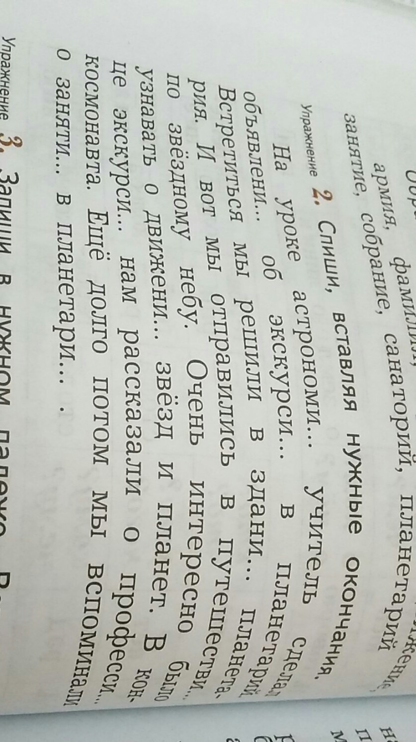 На уроке астрономии учитель сделал объявление об экскурсии в планетарий. Встретиться мы решили в здании планетария. И вот мы отправились в путешествие по звёздному небу. Очень интересно было узнавать о движении звёзд и планет. В конце экскурсии нам рассказали о профессии космонавта. Ещё долго потом мы вспоминали о занятии в планетарии.
