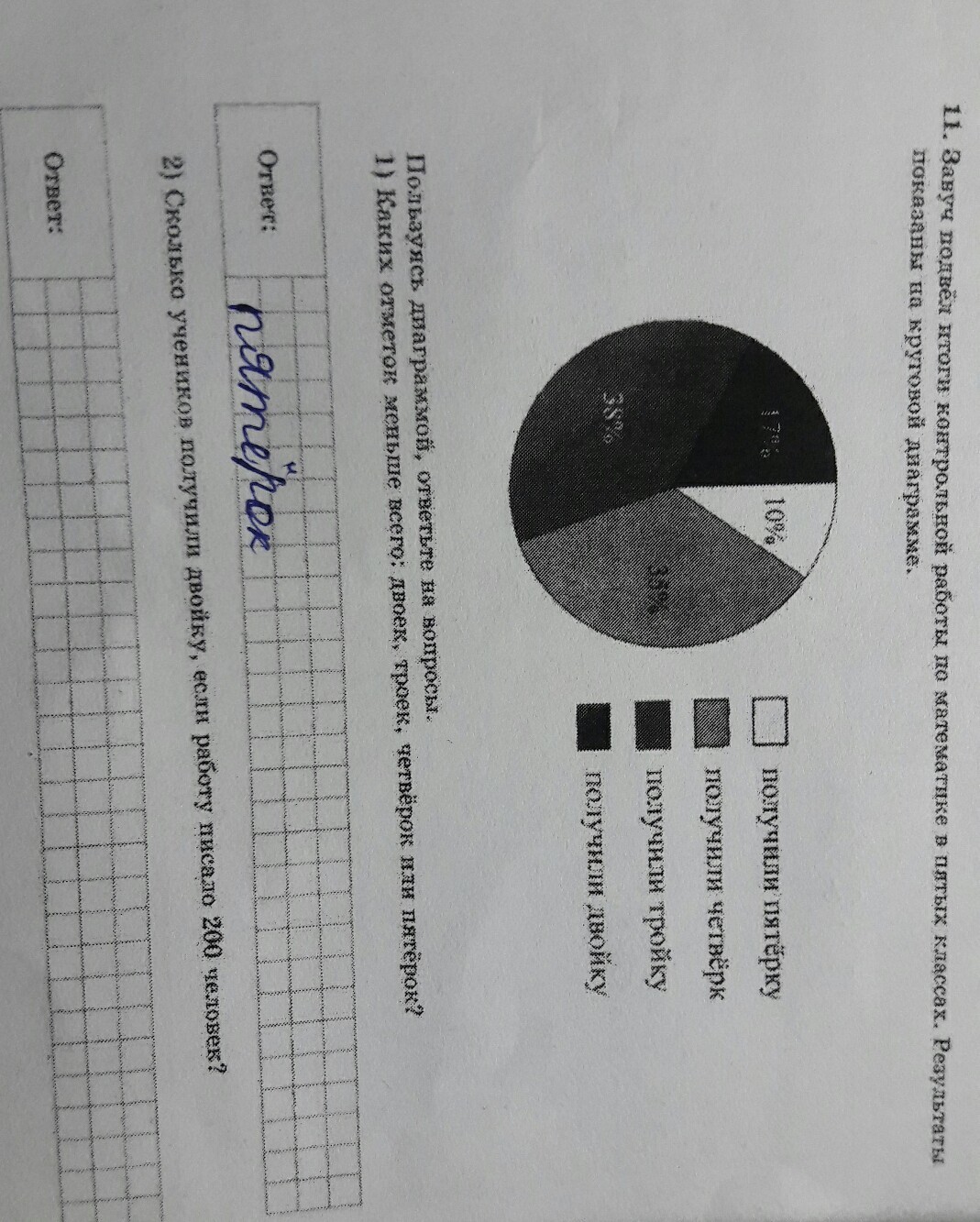 2)Сколько учеников получили двойку если работу писало 200 человек?