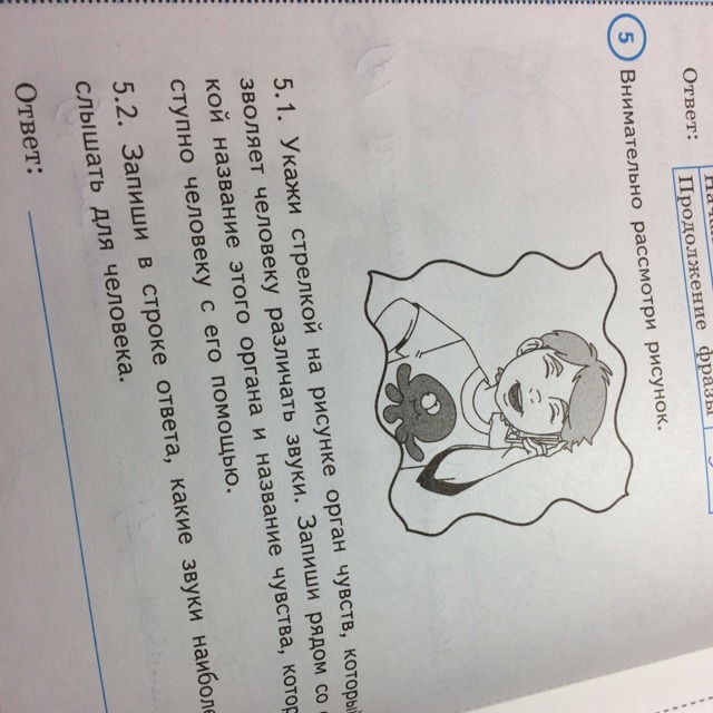 Укажи стрелкой на рисунке орган чувств,который позволяет человеку различать звуки. Запиши рядом со стрелкой название этого органа и название чувства,которое доступно человеку с его помощью.