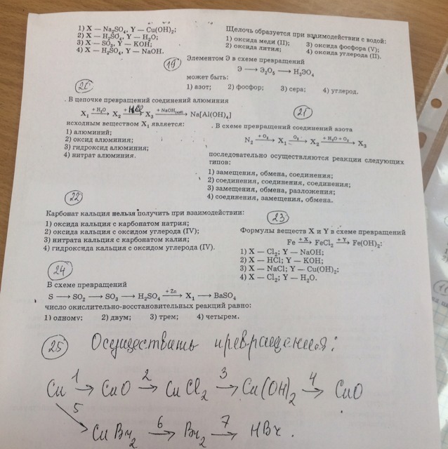 25. 1)2 Cu+O2=2 CuO ( при температуре)