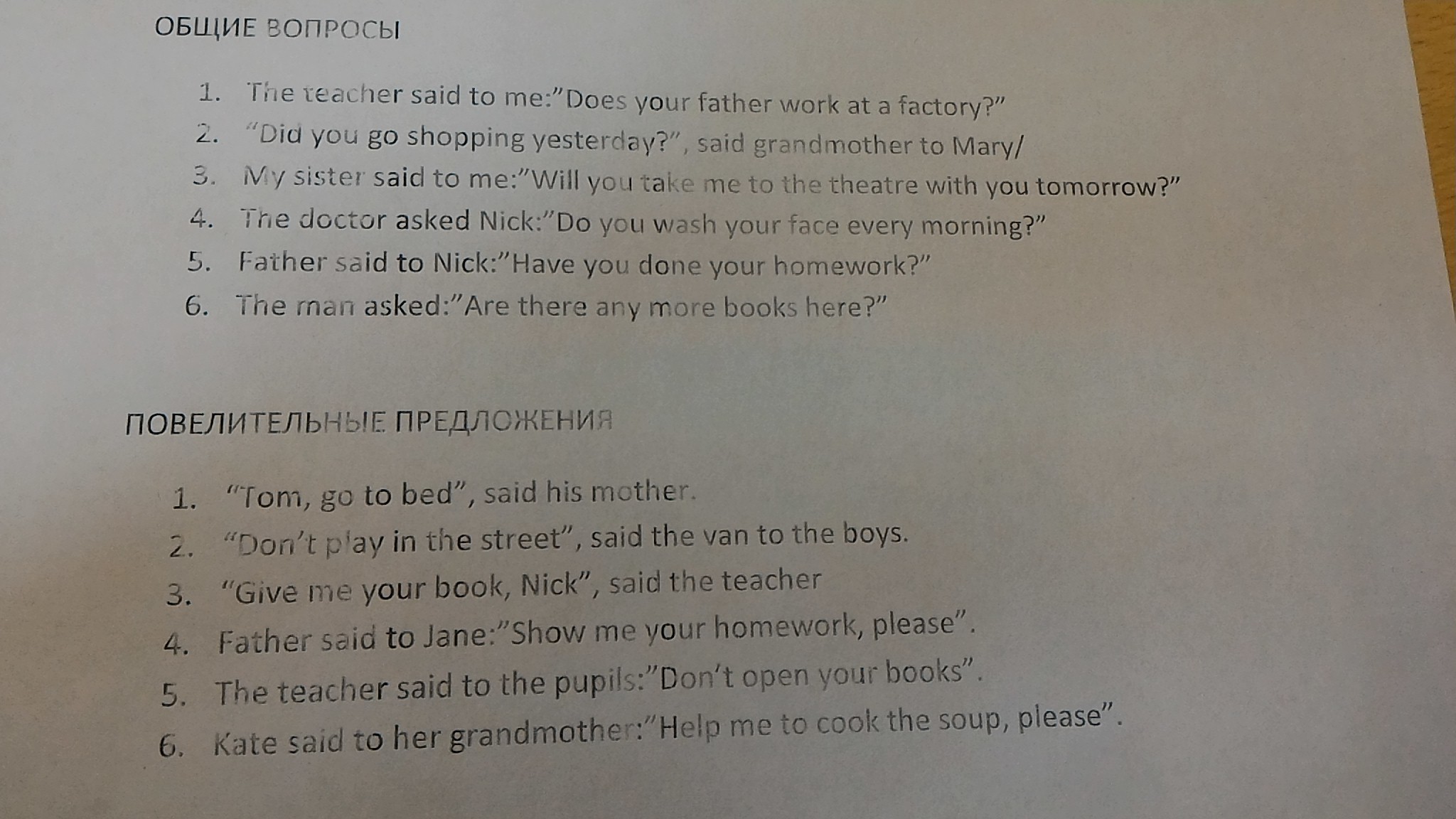 Father asked Nick if he had done his homework.