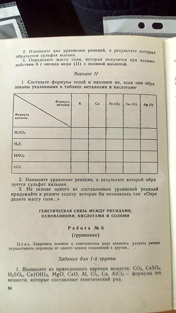 2 вариант 1 задание Составьте формулы солей и назовите их,если они образованы указанными в таблице металлами и кислотами