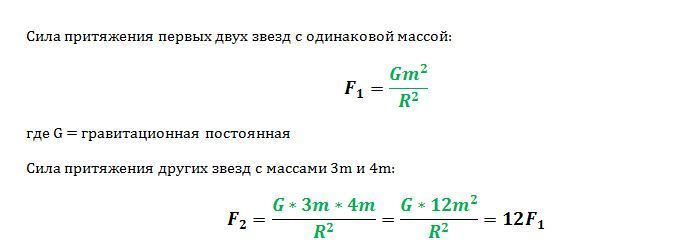 Две звезды с одинаковой массой m притягиваются к друг другу с силаси равными по модулю F. Чему равен модуль сил притяжения между другими двумя звёздами,если расстояние между их центрами такое же,как и в первом случае,а массы звёзд равны 3m и 4m? ( Можно не только ответ , а как решать тоже помочь)