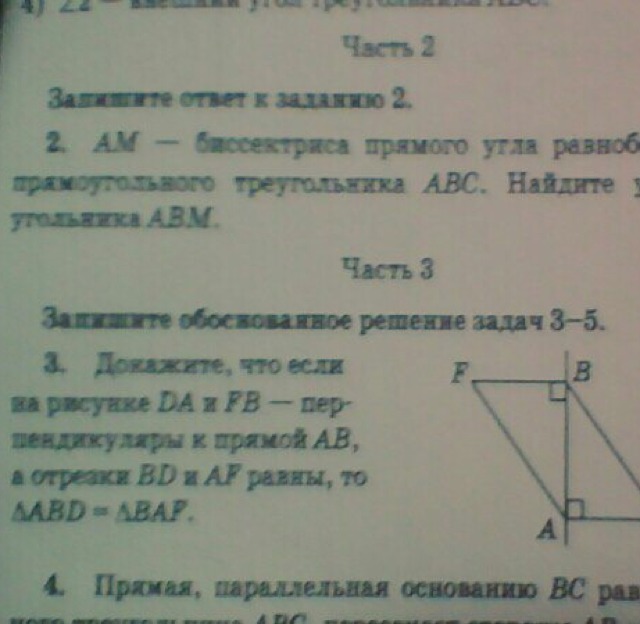 DBA и FAB равны следовательно раз два угла у обоих треугольников равны то и третьи углы тоже будут равны а так как в этих треугольниках все углы равны то и стороны их равны