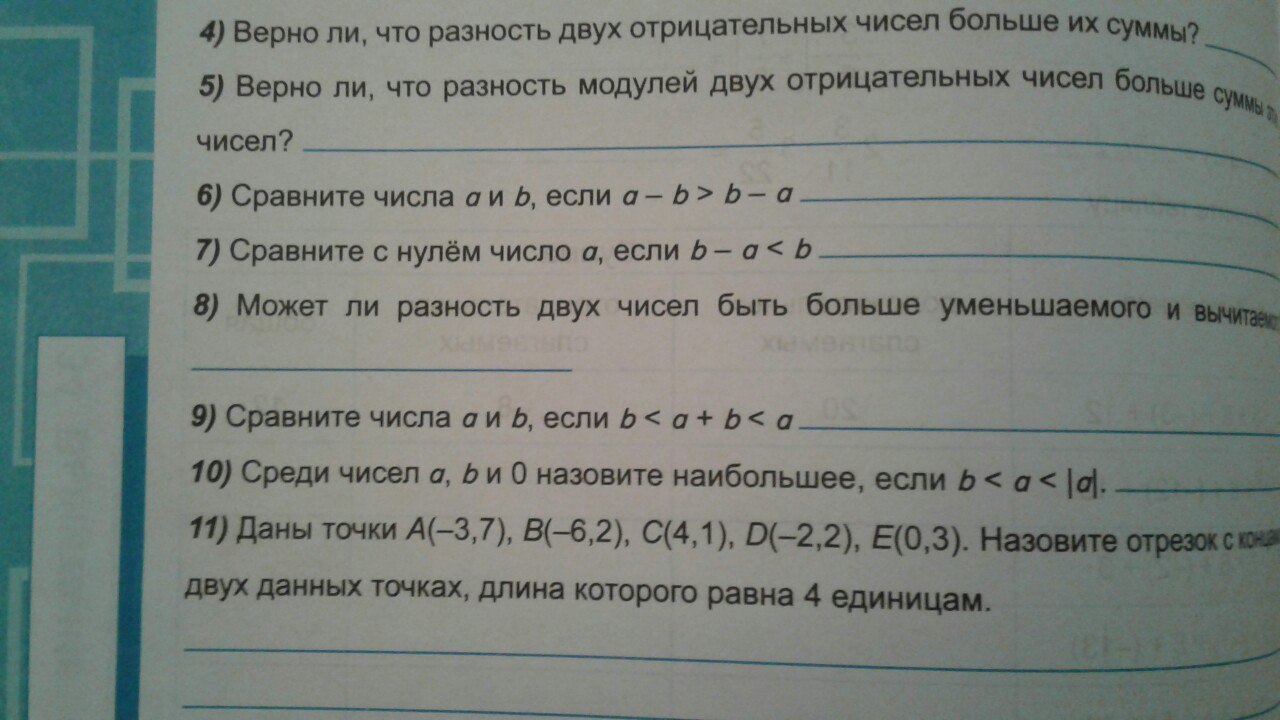 10. 0 тк а по модулю больше простого а значит а меньше нуля, а b меньше а