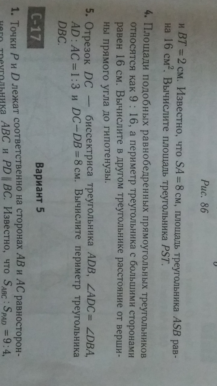 Гипотенуза большего треугольника по теореме Пифагора равна b√2