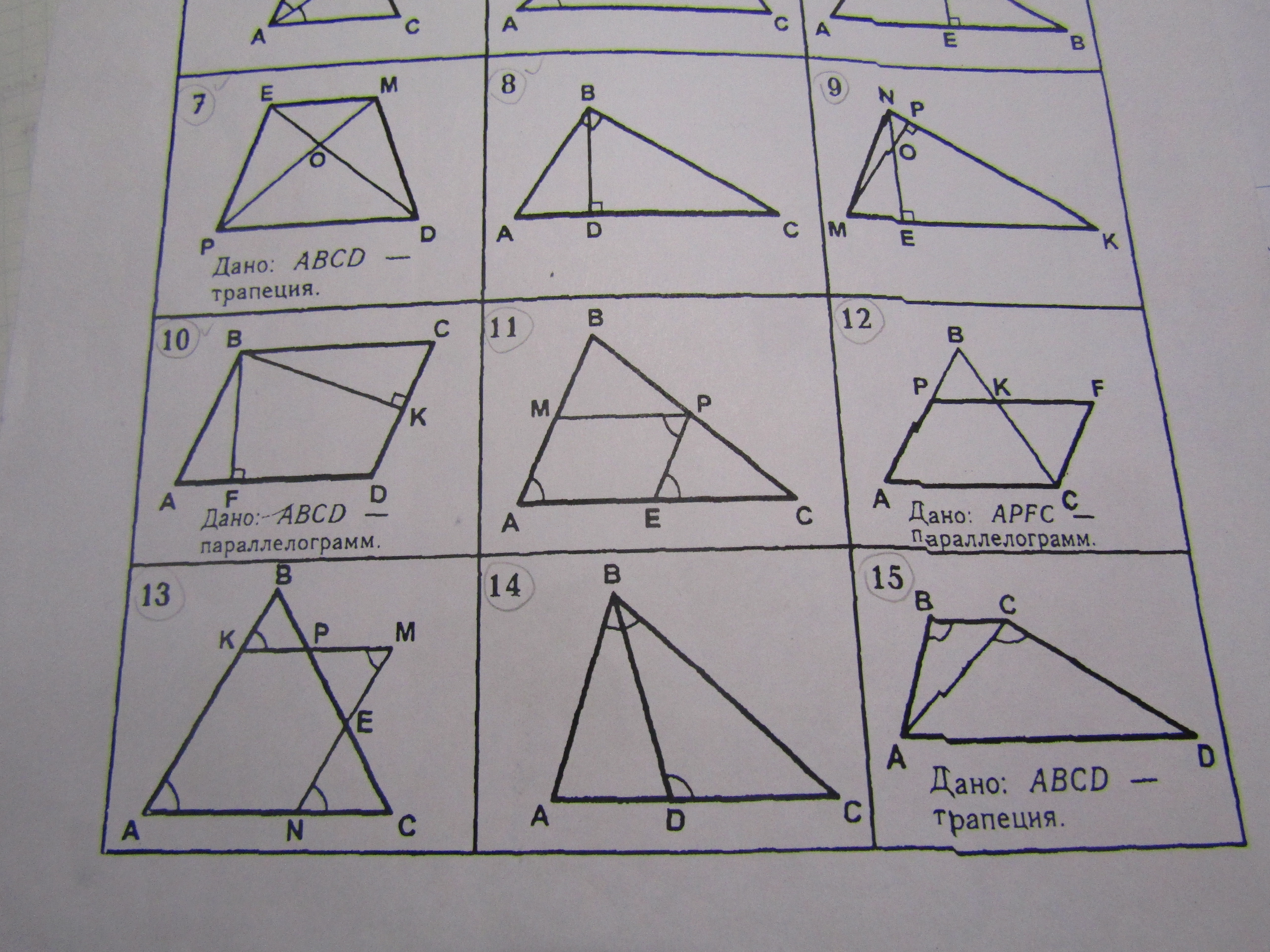 Указать подобные треугольники и доказать их подобия по первому признаку подобия. Нужен 9, 11, 12, 13, 14 и 15 номер.
