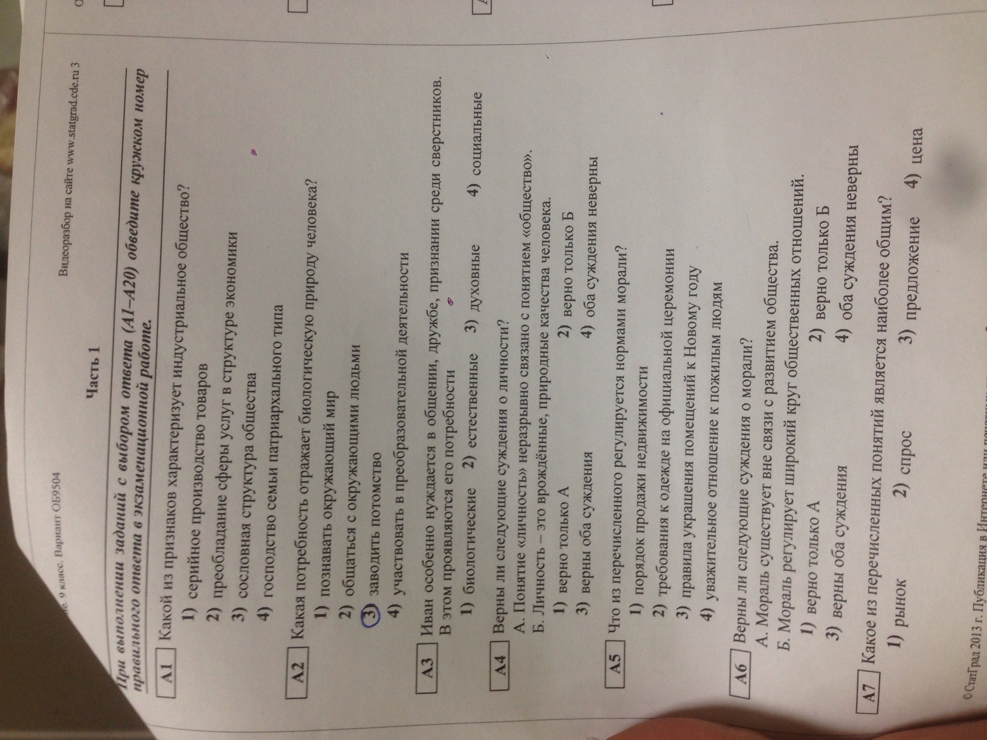 а7 1 или 3