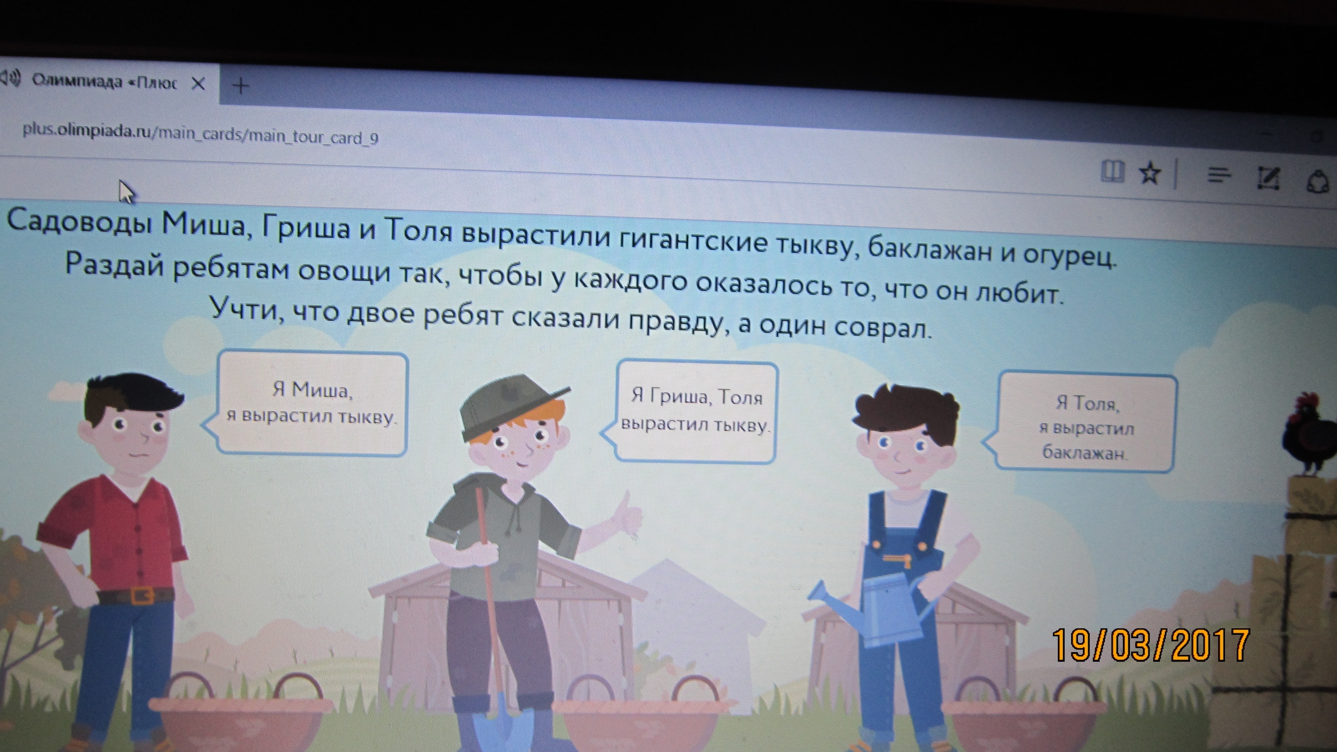 Миша получит тыкву Толик баклажан А Гриша сперва по тыкве потом па боклажану а потом огурец
