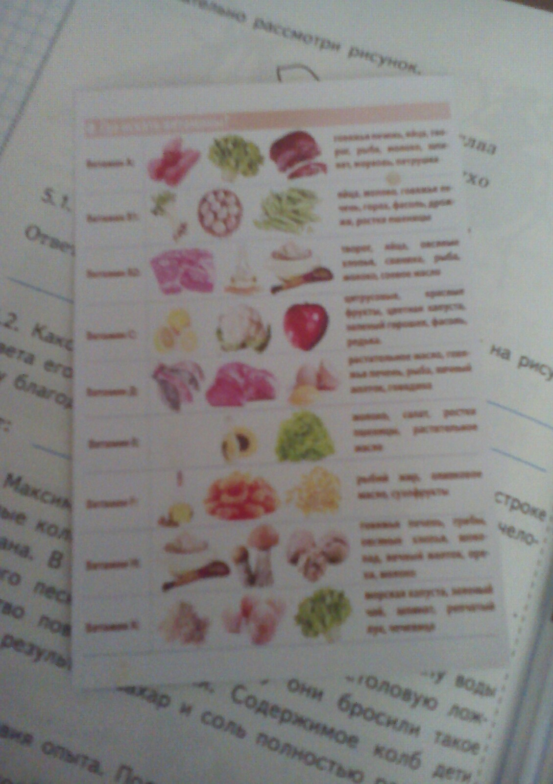 Установи стрелками соответствие между продуктами и витаминами, которыми они богаты.